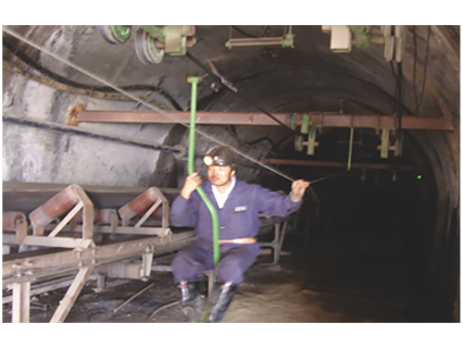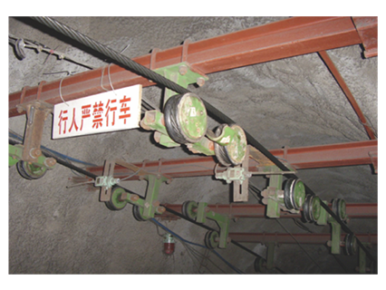 在架空乘人裝置運(yùn)行的沿途中,全巷道內(nèi)設(shè)置突發(fā)事件的緊急停車(chē)裝置,并分區(qū)段編號(hào)報(bào)警,以確保乘人安全。同時(shí)也可作為架空乘人裝置調(diào)試和檢修時(shí)的開(kāi)停裝置。