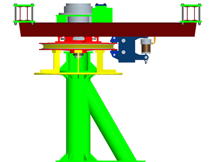 ③驅(qū)動(dòng)輪、迂回輪下方安裝防脫繩立柱。