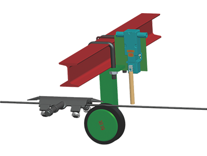 該裝置能有效防止吊椅因左右擺動(dòng)(特別是吊椅向巷道中心擺動(dòng))較大時(shí),托繩輪擋住吊椅而瞬間將人向上翻轉(zhuǎn)造成人身傷害事故。此裝置僅適用于G型、HK型抱索器,HM型抱索器不能使用。