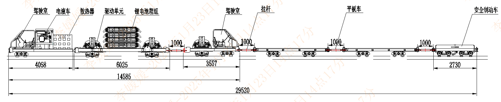 由3箱鋰離子蓄電池電源+兩個(gè)驅(qū)動(dòng)單元組合 ,為齒軌卡軌車的基礎(chǔ)組成部分之一。