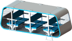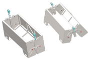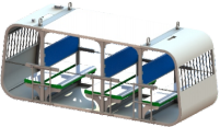 物料箱包含吊裝結構和箱體。箱體容積可根據(jù)礦方需求定制,用于裝載描桿、矸石等小型貨物。物料箱分為底卸式結構和側翻式結構,當運輸?shù)街付ㄎ恢脮r,物料箱下方封板或側面可以打開,將貨物落下,從而大大減少貨物的裝卸時間。