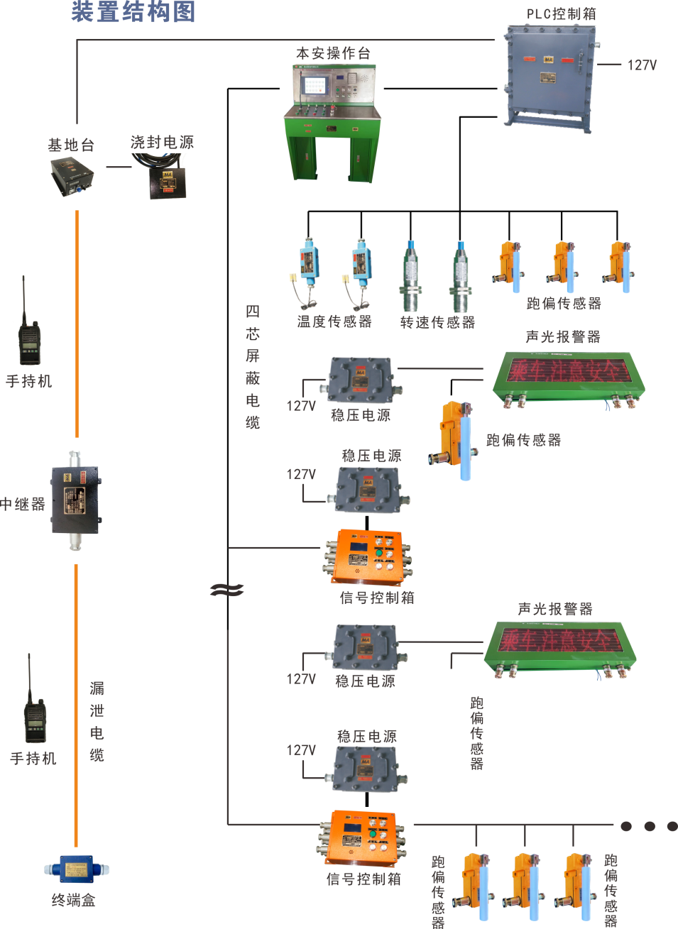本裝置不但可以通過(guò)音頻總線,可以通話、報(bào)警,還具備全程實(shí)時(shí)動(dòng)態(tài)監(jiān)視無(wú)極繩連續(xù)牽引車運(yùn)行狀態(tài),提高整個(gè)無(wú)極繩連續(xù)牽引車安全性能。
