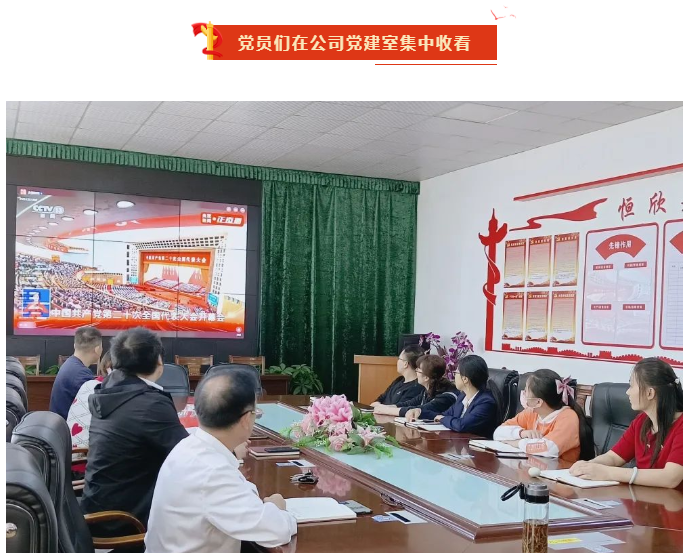 舉世矚目的中國共產(chǎn)黨第二十次全國代表大會于2022年10月16日上午在北京隆重開幕,湘潭恒欣實業(yè)股份有限公司黨支部組織黨員集中收看開幕會直播,并發(fā)動全體員工就近收看。