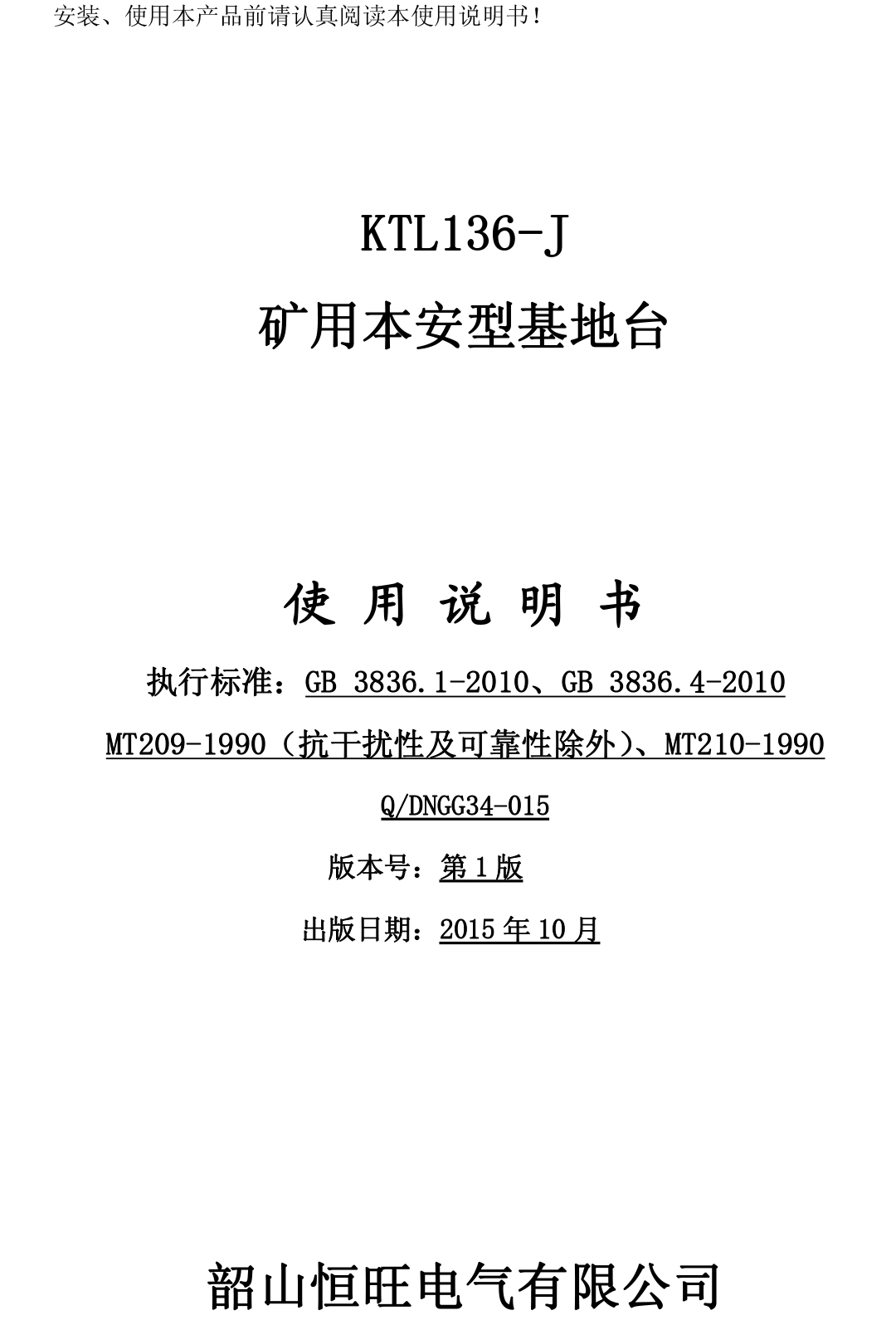 KTL136-J礦用本安型基地臺(tái)說(shuō)明書(shū)