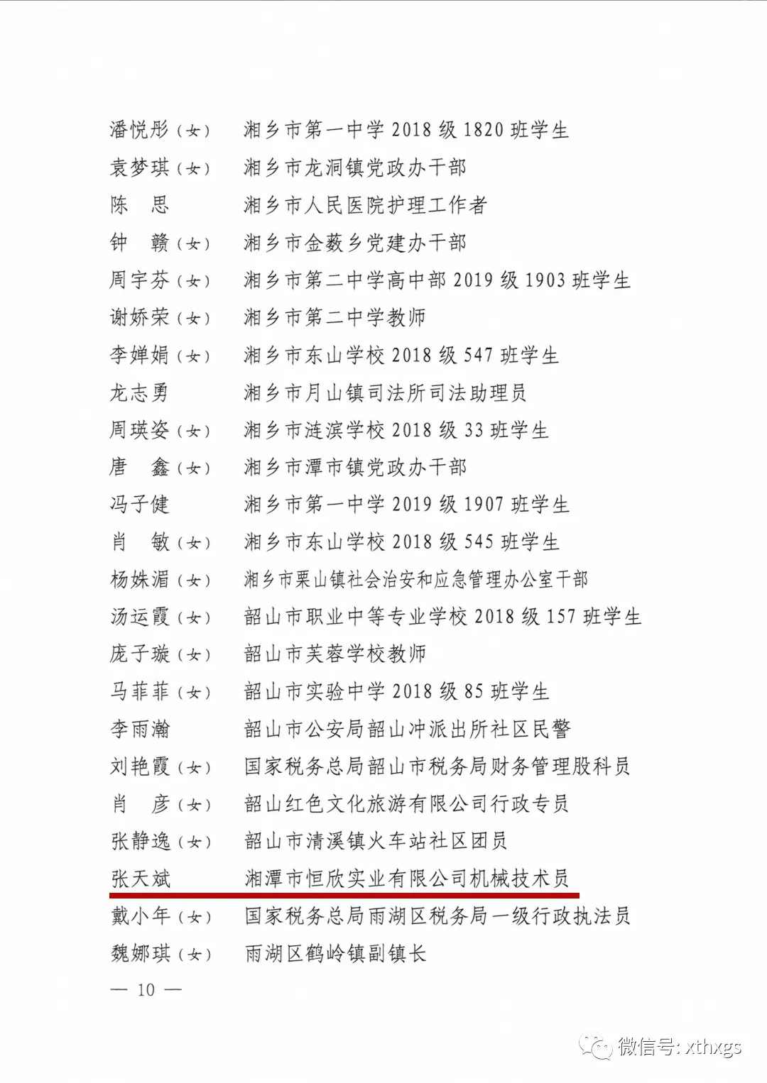 【湘潭恒欣】張?zhí)毂蟊皇谟?/strong>"湘潭市優(yōu)秀共青團(tuán)員"