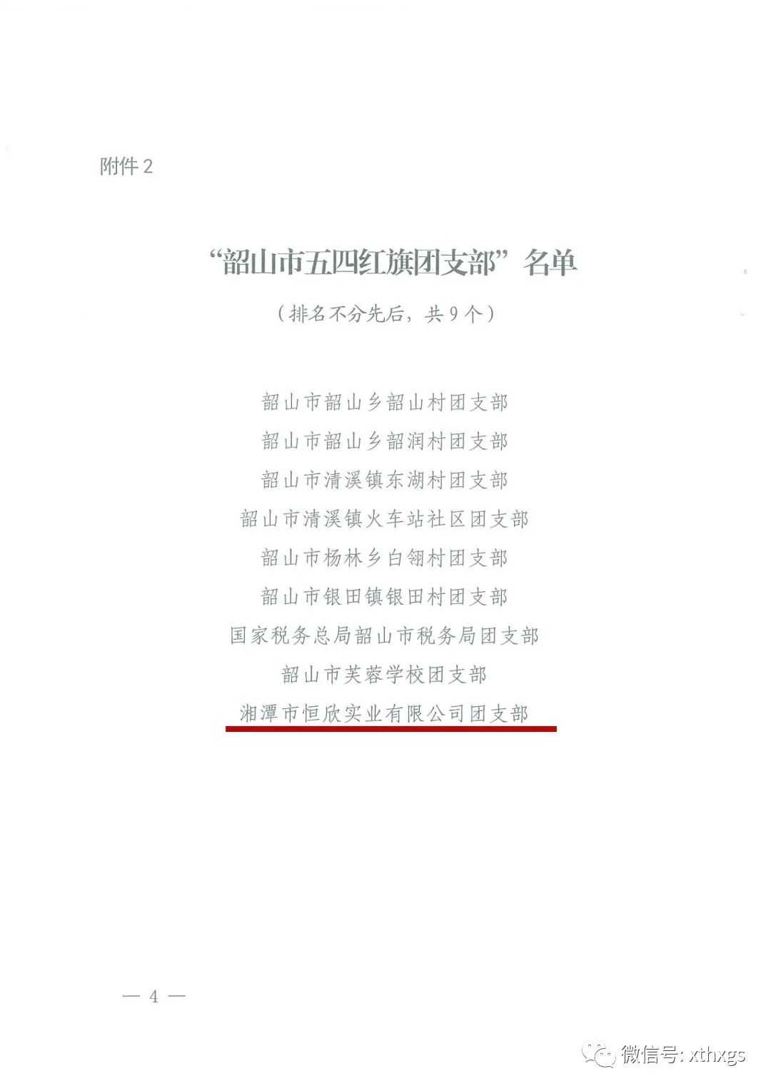 xiao12666@163.com【湘潭恒欣】喜獲湘潭市、韶山市"五四"榮譽(yù)