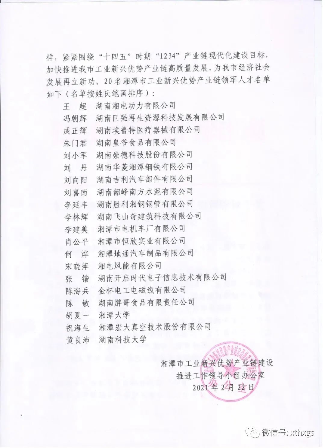 熱烈慶?!鞠嫣逗阈馈慷麻L肖公平被評為湘潭市工業(yè)新興優(yōu)勢產(chǎn)業(yè)鏈領(lǐng)軍人才。