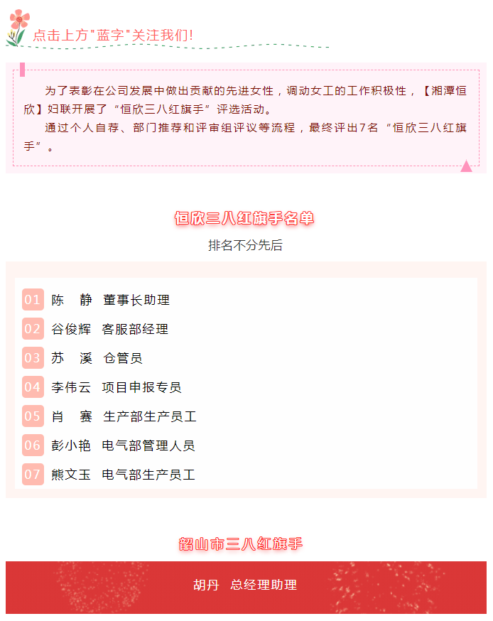 xiao12666@163.com【湘潭恒欣】婦聯(lián)開展“三八紅旗手”評選活動