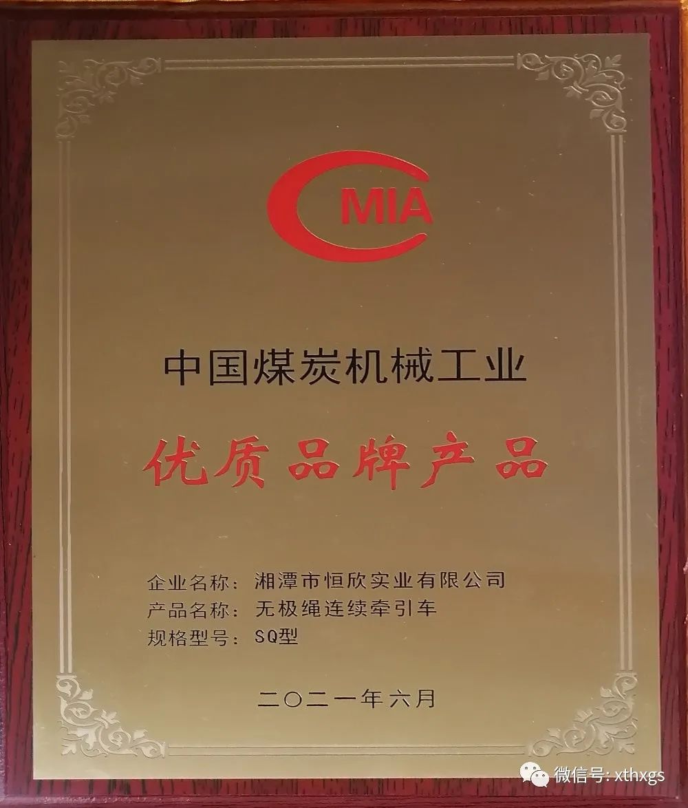 【湘潭恒欣】的“無極繩”產品榮獲了中國煤炭機械工業(yè)協(xié)會【優(yōu)質品牌產品】。該榮譽是經過協(xié)會專家對產品技術水平、市場占有率、企業(yè)利稅、質量管理保障、生產條件和售后服務等方面進行綜合評價,在眾多產品中脫穎而出。