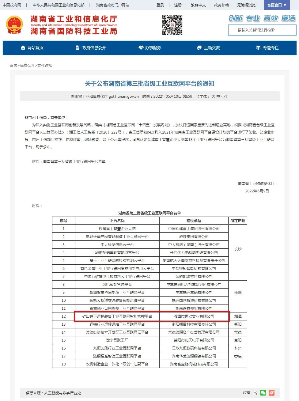 5月19日,省工信廳組織的省專精特新企業(yè)數(shù)字化轉(zhuǎn)型現(xiàn)場(chǎng)觀摩會(huì)議在長(zhǎng)沙召開(kāi),會(huì)議上,【湘潭恒欣】總經(jīng)理肖連平代表公司接受了礦山井下運(yùn)輸裝備工業(yè)互聯(lián)網(wǎng)智能管控平臺(tái),被認(rèn)定為湖南省工業(yè)互聯(lián)網(wǎng)平臺(tái)的授牌。