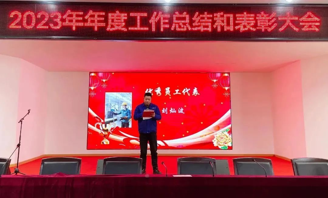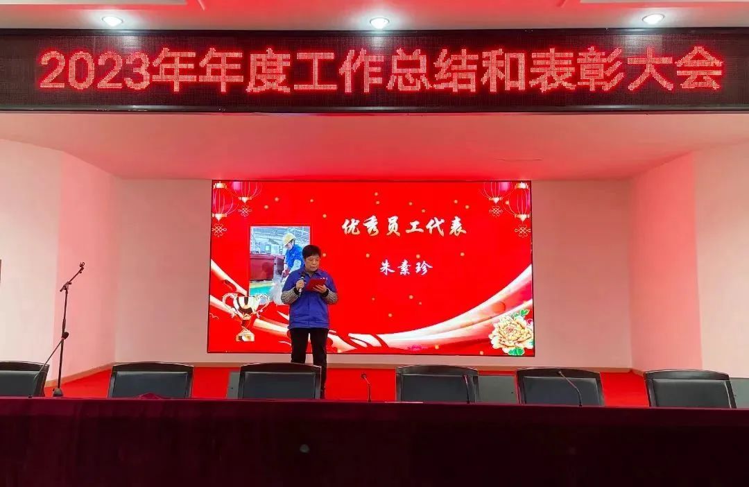 在表彰環(huán)節(jié),對2023年度的3個先進班組和57名優(yōu)秀員工、標(biāo)兵和勞模分別進行了表彰,感謝他們在過去一年中勤勉工作、拼搏進取,為公司實現(xiàn)銷售訂單、營業(yè)收入、公司凈利潤等經(jīng)營指標(biāo)的大幅增長,起到了表率作用和大的貢獻!同時,在表彰過程中,部分優(yōu)秀員工代表紛紛上臺感言,分享了各自敬業(yè)愛崗的工作情懷和職業(yè)操守,深深感恩【恒欣股份】給員工們打造的良好平臺,不僅給400多名員工的就業(yè)機會,而且讓全體員工的福利待遇年年增長!并表示將會繼續(xù)發(fā)揮先進表率作用,以更加飽滿的熱情投入到今后的工作中,為公司持續(xù)健康的高質(zhì)量發(fā)展作貢獻!