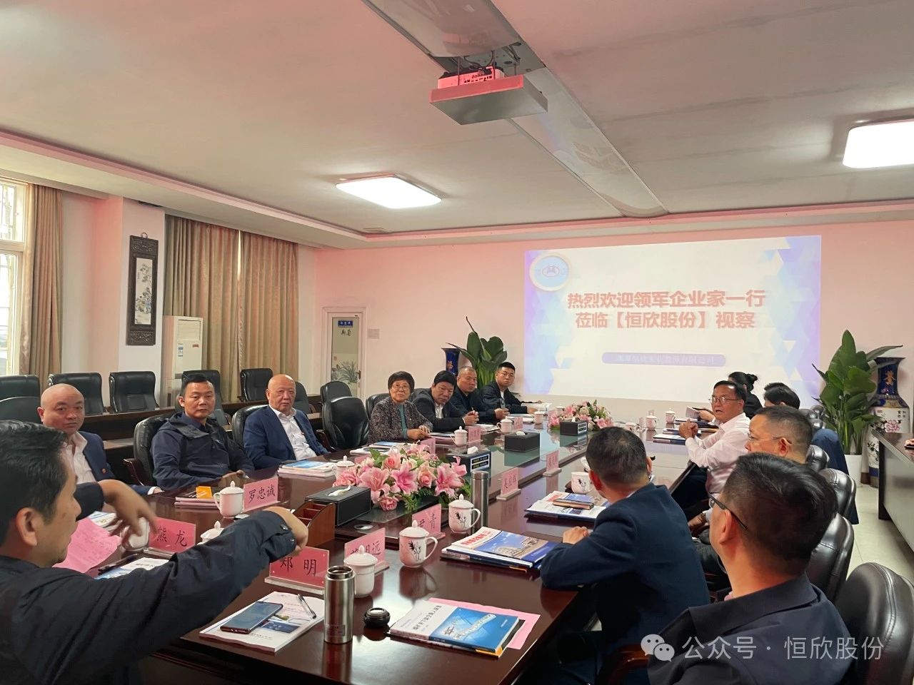 4月13日,來(lái)自湖南省內(nèi)14家優(yōu)秀企業(yè)近20位企業(yè)家們蒞臨【恒欣股份】,開(kāi)展以“互看互學(xué),共同發(fā)展”為主題的管理交流活動(dòng)?!竞阈拦煞荨慷麻L(zhǎng)肖公平、副董事長(zhǎng)肖連平、總經(jīng)理肖龍武共同接待了湖南領(lǐng)軍企業(yè)家一行。