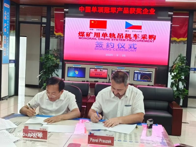 2024年5月31日,【恒欣股份】與捷克【PDprofi】簽訂煤礦用單軌吊機車購銷協(xié)議,這是繼產品出口肯尼亞、印尼、越南等國后,進一步擴張了【恒欣股份】的海外市場規(guī)模,也標志著【恒欣股份】進軍歐洲市場取得重大突破。【恒欣股份】始終致力于為全球礦山企業(yè)提供最安全、最環(huán)保、最節(jié)能的產品,以實現(xiàn)讓“全球礦山充滿‘恒欣’”的愿景。
