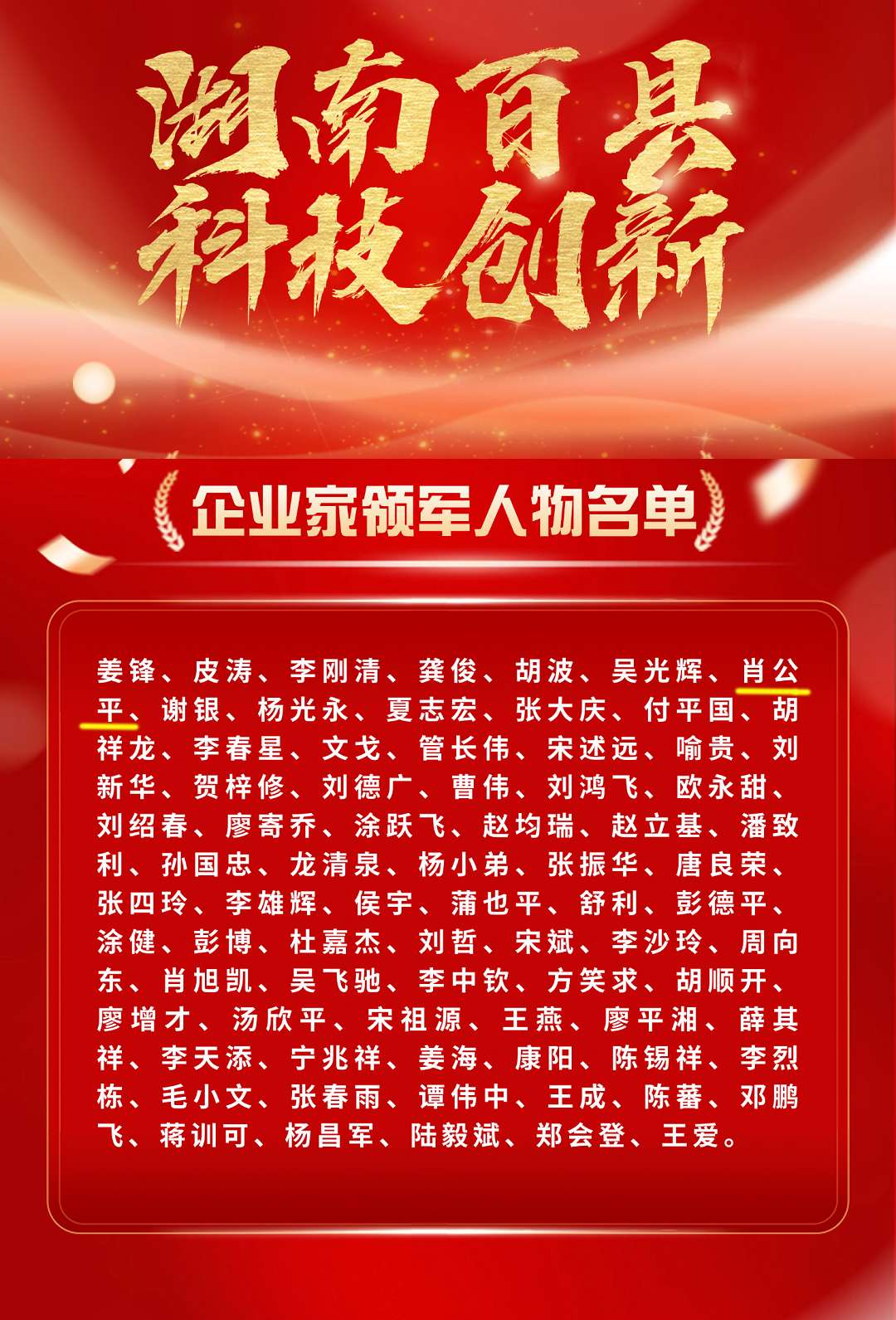 5月13日,由湖南省科技廳、湖南日?qǐng)?bào)社共同主辦的“創(chuàng)新型湖南建設(shè)宣傳展示活動(dòng)”之“創(chuàng)新湖南主題宣傳暨2023-2024年度湖南百縣科技創(chuàng)新成果宣傳展示活動(dòng)”評(píng)選結(jié)果揭曉。其中,【恒欣股份】董事長肖公平入選“企業(yè)家領(lǐng)軍人物”名單。
