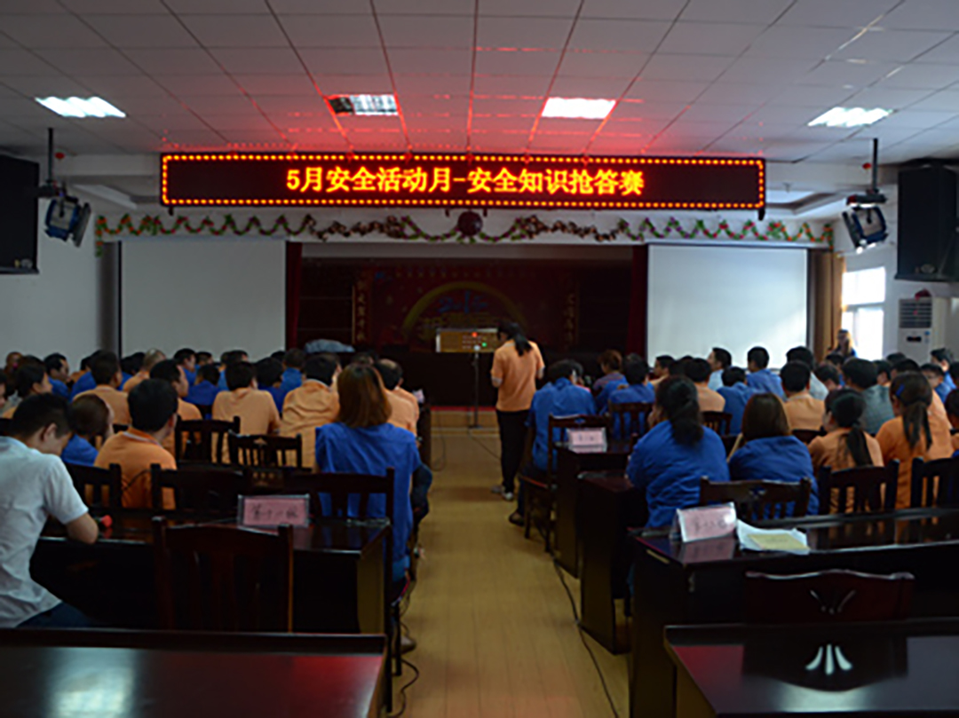 公司除開展5月專項安全生產(chǎn)月活動以外,在日常工作中時刻不忘“安全就是生命,生命就是一切”的安全理念,為此,除設(shè)備安全部負(fù)責(zé)公司安全生產(chǎn)管理以外,還成立了安全管理分會進(jìn)行日常安全巡檢工作,并與各生產(chǎn)班組長簽訂了安全生產(chǎn)責(zé)任狀,每月組織員工進(jìn)行安全生產(chǎn)培訓(xùn),并通過公司內(nèi)部廣播系統(tǒng)、月報、宣傳欄、QQ、微信平臺等方式進(jìn)行安全生產(chǎn)知識宣傳,使安全生產(chǎn)意識深入每位員工心中。