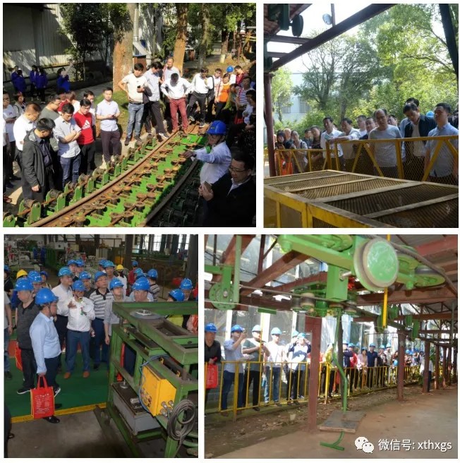 5月11日上午,40多名專(zhuān)家在【湘潭恒欣】董事長(zhǎng)肖公平、總經(jīng)理肖連平、總工歐陽(yáng)洋的陪同下,參觀了第一代猴車(chē)(機(jī)械猴車(chē))、第二代猴車(chē)(液壓猴車(chē))、第三代猴車(chē)(軌道猴車(chē))、梭車(chē)等試驗(yàn)線,肖董事長(zhǎng)通過(guò)展示試驗(yàn)線向各位專(zhuān)家們介紹了【鋼絲繩制動(dòng)器】、【鋼絲繩斷繩抓捕器】、【鋼絲繩在線檢測(cè)及報(bào)警系統(tǒng)】、【物聯(lián)網(wǎng)監(jiān)管平臺(tái)】等猴車(chē)新技術(shù),其中【軌道猴車(chē)】引起了專(zhuān)家們的重高的關(guān)注和熱議,一致認(rèn)為其安全性、可靠性是傳統(tǒng)猴車(chē)無(wú)法比擬的,并表示以后將大力推廣軌道猴車(chē)。隨后又參觀了【湘潭恒欣】的生產(chǎn)和辦公現(xiàn)場(chǎng)以及榮譽(yù)展覽室。