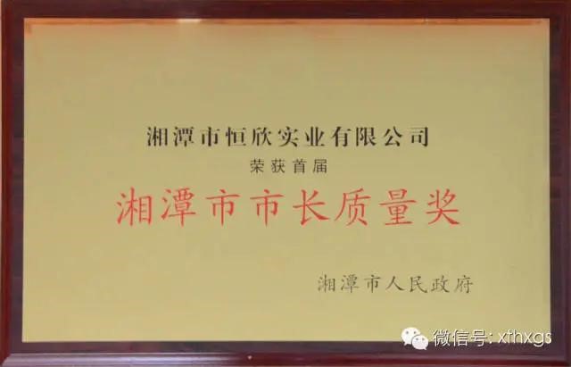 3.市級榮譽(yù):2014年【湘潭恒欣】榮獲“湘潭市首屆市長質(zhì)量獎”、“全市加速推進(jìn)新型工業(yè)化二等獎”。