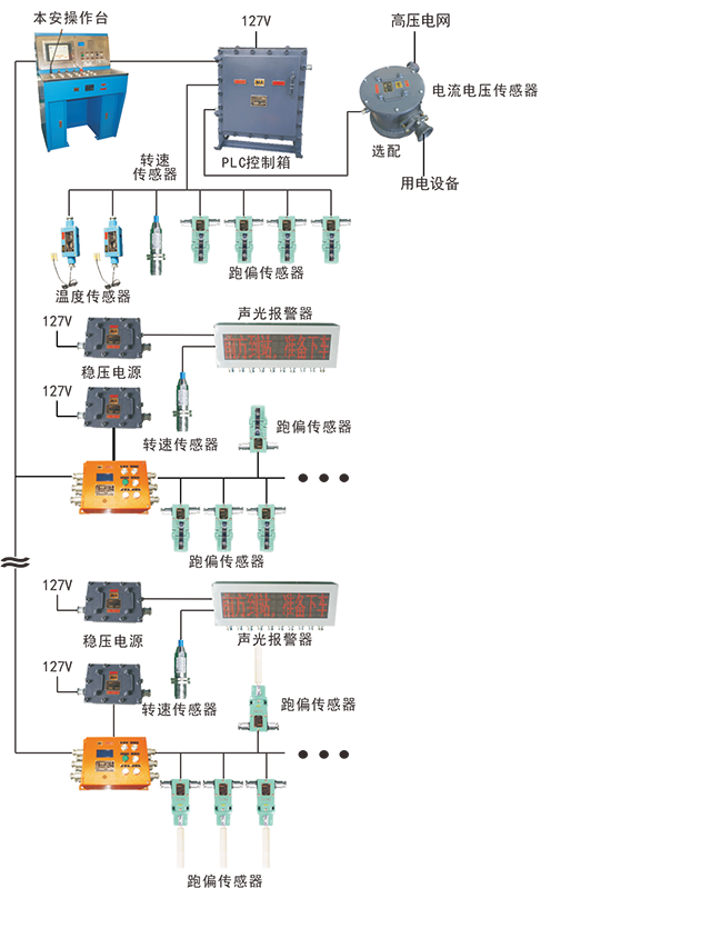 2.1.2具有機頭越位、機尾越位、上變坡掉繩、下變坡點掉繩、張緊力下降、沿線急停、沿線防脫繩、打滑保護、制動器動作失效保護及下車點提示等開關量信號采集、顯示及報警功能。